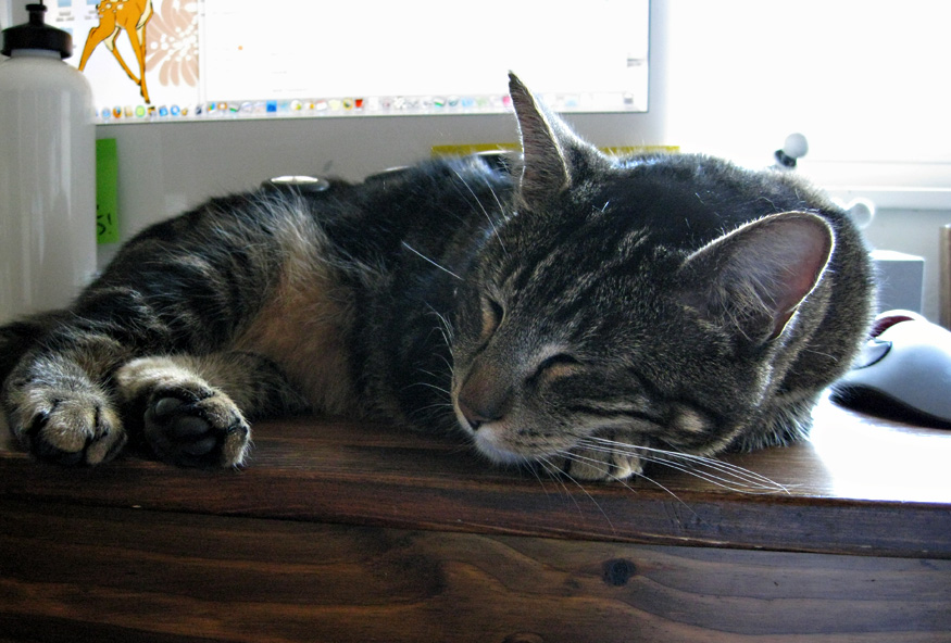 Can You Find the MAC Eyeshadows? July 8th, 2009 by Karen 14 Comments Tabs napping in his new favorite spot.