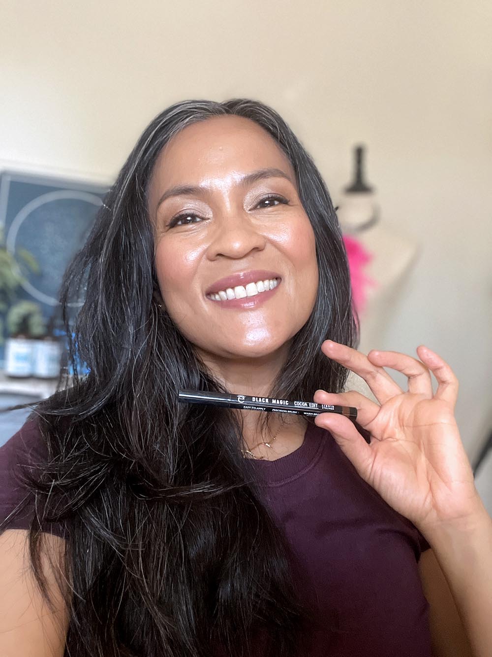 I’m wearing the epic $22 Eyeko liquid liner in Cocoa Edit today, and FYI, not only is it the real deal (long lasting, easy to apply, doesn’t smudge), it just got restocked at Ulta. It’s an online exclusive, so unfortunately you can’t just roll up to your local store, but if you don’t mind the wait, it’s the best dark brown liquid liner out there right now, IMHO.