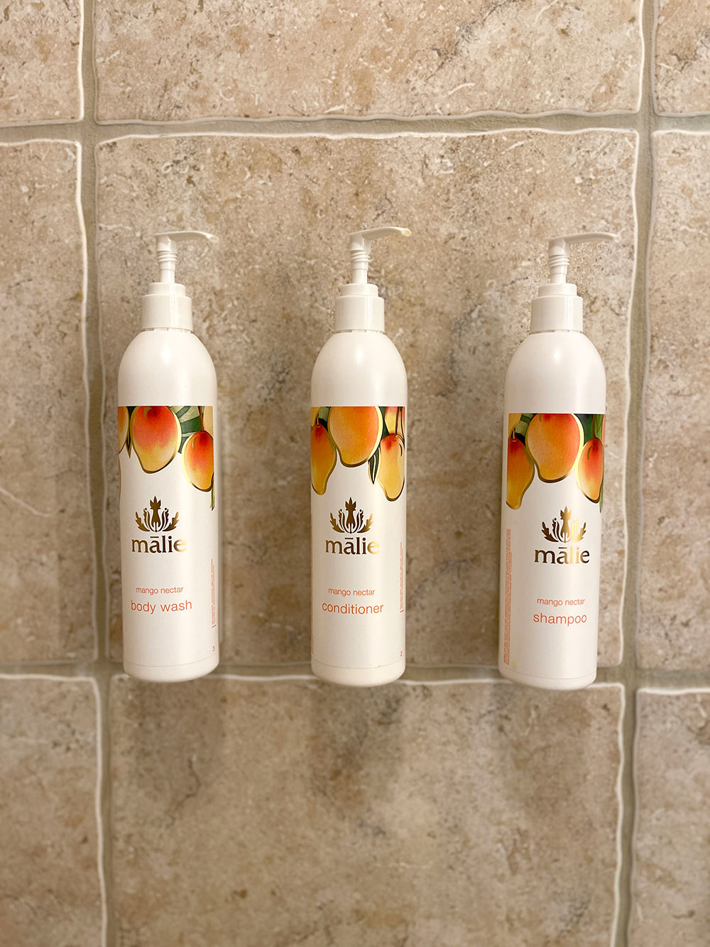 - I didn’t bring any shampoo, conditioner or body wash because the place we’re staying at has Malie Organics Mango Nectar hair and body products!