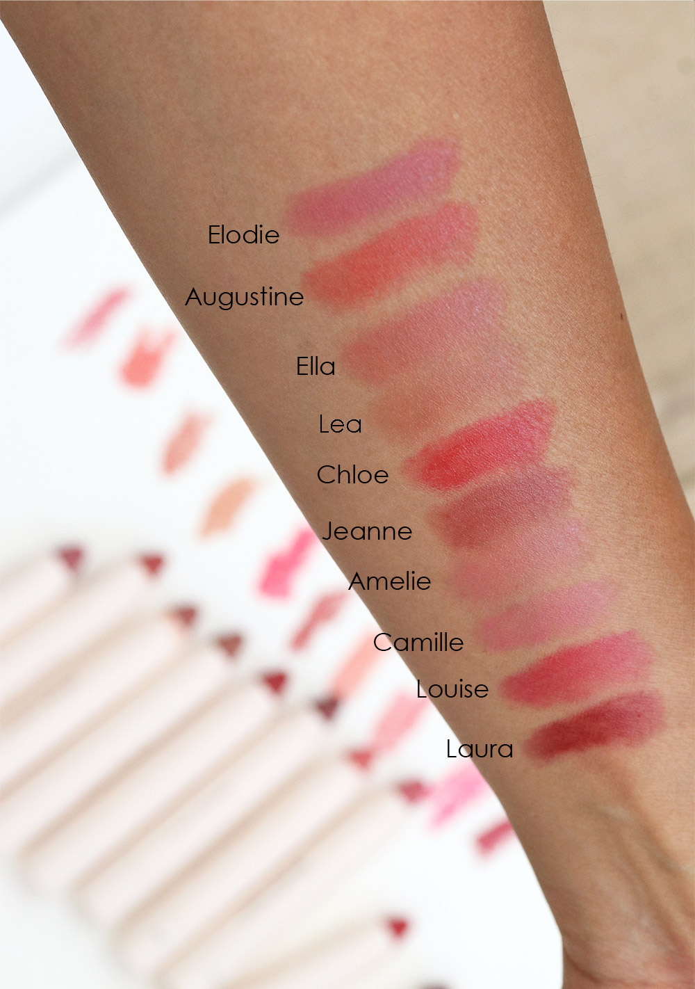 It’s a vivid yellow pink that reads more as a bright red on my lips, Laura Mercier Louise, another beauty from her twist-up line of soft matte lip pencils.