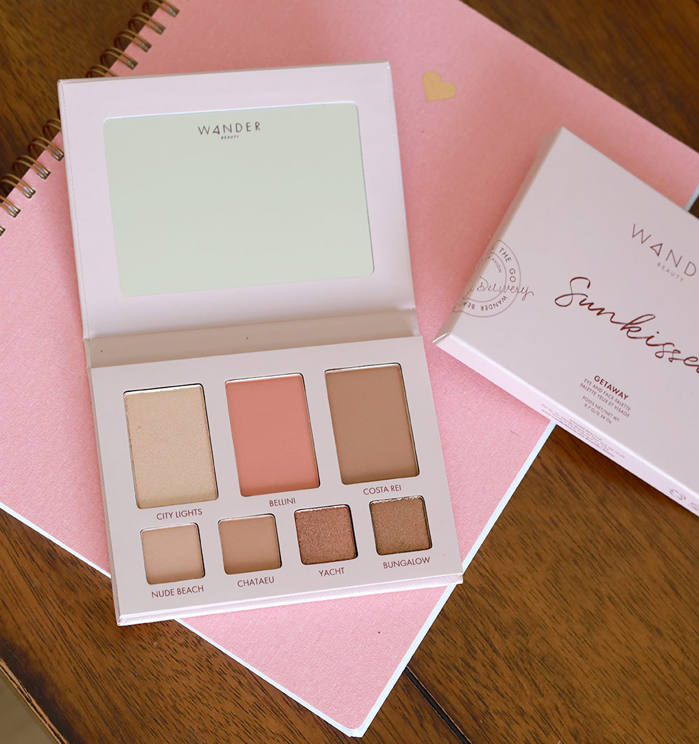 I’m wearing taupe, brown, bronze and peach shades from the Sunkissed Getaway Eye and Face Palette by Wander Beauty. It has a bunch of eyeshadows and cheek powders for breezy bronze looks. If you’re the type of person who likes shadows that don’t make you work too hard, you might like it.