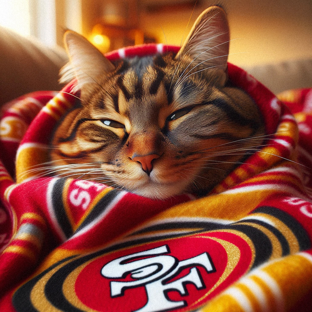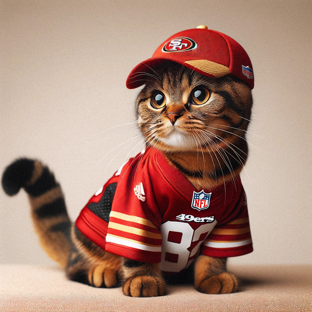 Rosie wants Brock Purdy and the San Francisco 49ers to win the Super Bowl today because she’s a Bay Area girl, and she bleeds red and gold. Always has since she was a kitten.