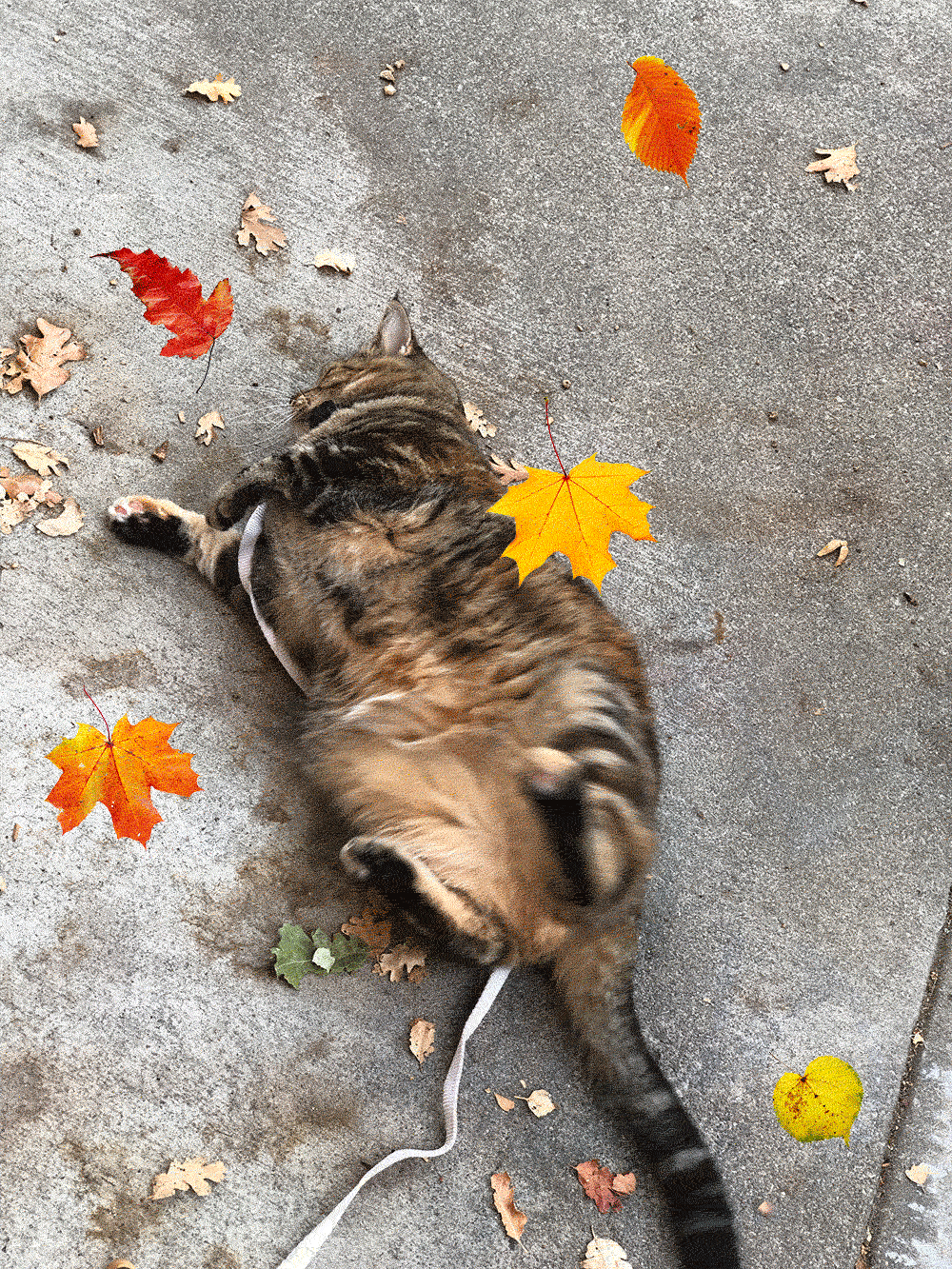 It’s full-on fall, y’all. On windy days when I see the fallen oak leaves pick up and swirl around, I think of how Tabs loved to chase them. He’d sit there and wait for a bunch of leaves to swirl around, and the he’d just bound on over and get up in the mix.
