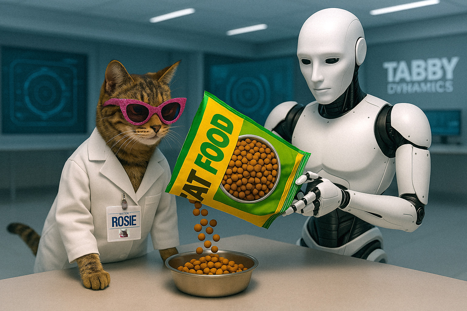 Today, a special meeting of the Board of Directors of Tabs the Cat Industries, LLC was called to review a most disturbing matter — the repeated and inexplicable disappearance of Chief Feline Officer Rosie’s crunchies.
