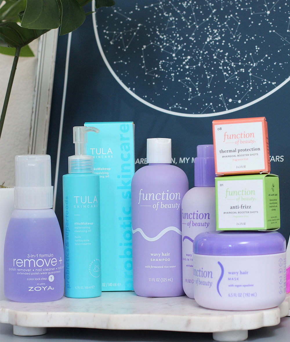 Onto hair. I’ve been wanting to try Function of Beauty for a while, so I finally grabbed a few things from Target from the Wavy Hair Line: the shampoo, the hair mask, two of the boosters (one for heat protection and one for fighting frizz) and the leave-in treatment.