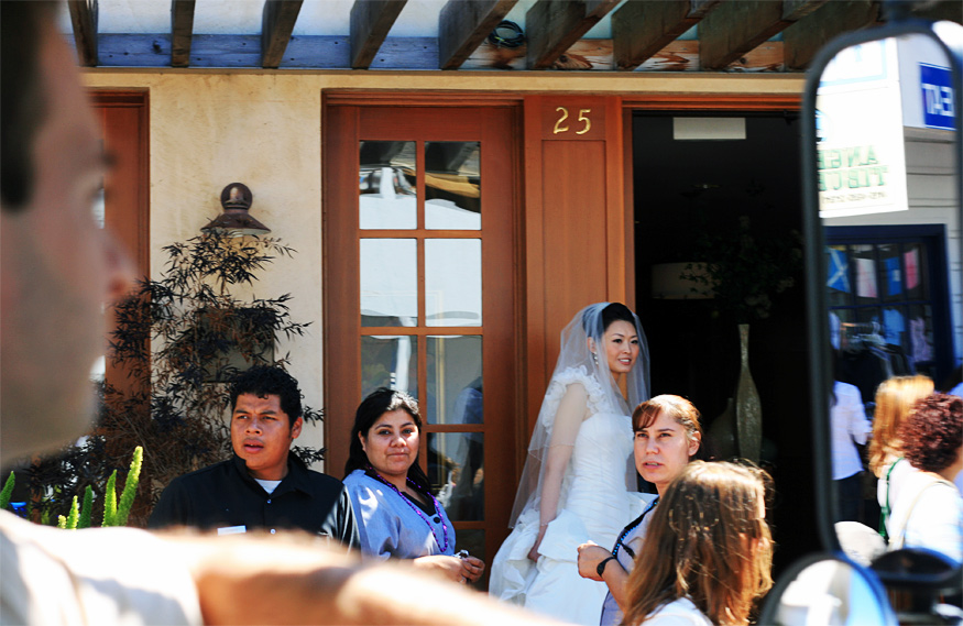 All Dressed in White September 6th, 2009 by Karen 3 Comments A bride catching a glimpse of the Labor Day parade.