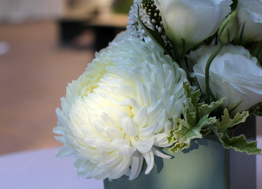 I think it’s a white dahlia. I think it looks a bit big for crysanthemum but I’m not sure.