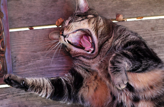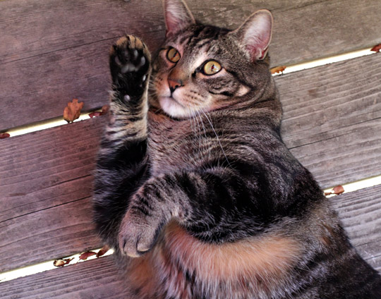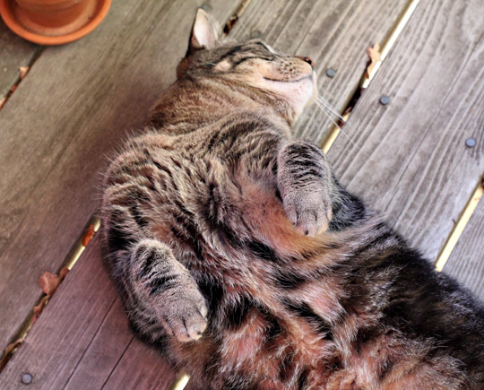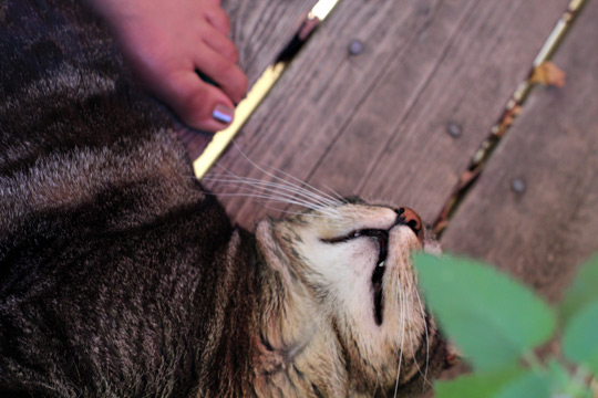 So cute. Rooster was enjoying his tummy rub on the bed so much this morning that he fell off! Actually, he slid off the side in slow-mo. It was very funny but he was so offended 🙂