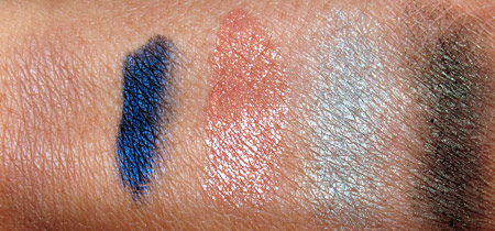 From left: Luminous Cheek Colour in Tan, Crayon Intense in Blue, Classic Cream Lipstick in Delicate, Smooth Eye Colour Duo in Laguna