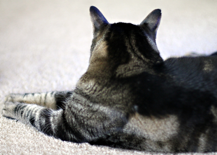 Belly either does that or pretends to lick his junk. I call this the “talk to the tail” pose. It is preceded by a dirty look. And if I try to break him away from the pose, he would show me the claws of dead. Yup, that’s how it goes with me and Belly.