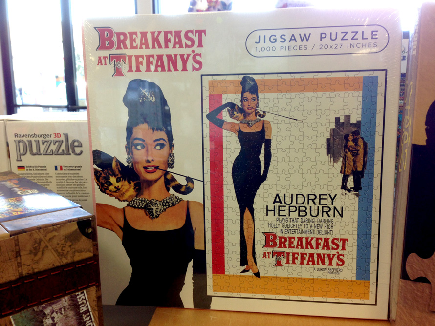 Hella Cool Mother’s Day Gifts: Breakfast at Tiffany’s Jigsaw Puzzle April 16th, 2013 by Karen 3 Comments I saw this 1000-piece Breakfast at Tiffany’s puzzle at a store in my town last weekend, but you can also buy it online. Holly Golightly is the ultimate cat lady.