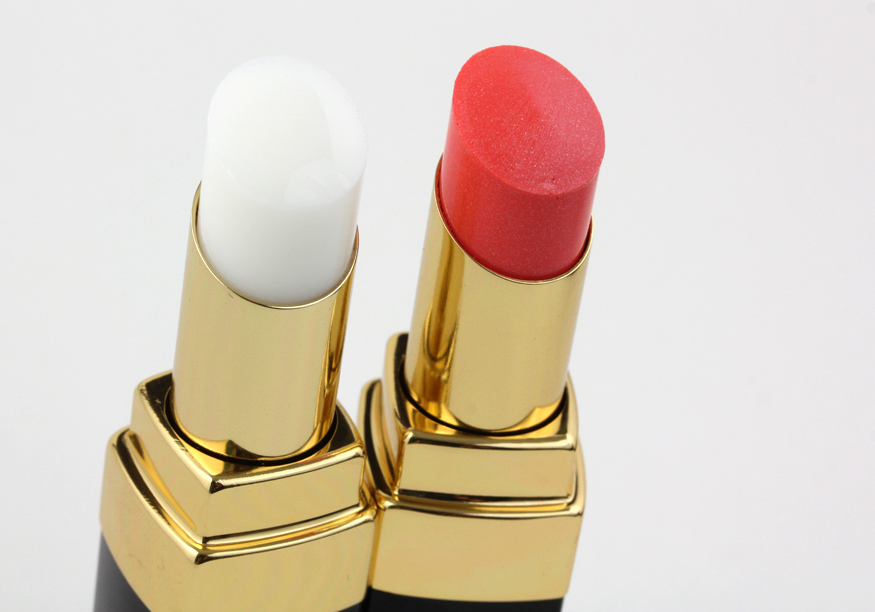 Chanel Rouge Coco Baume Hydrating Lip Balm on the left and Rouge Coco Shine in Flirt on the right, $32.50 each, from the Chanel Harmonie de Printemps spring 2012 collection.