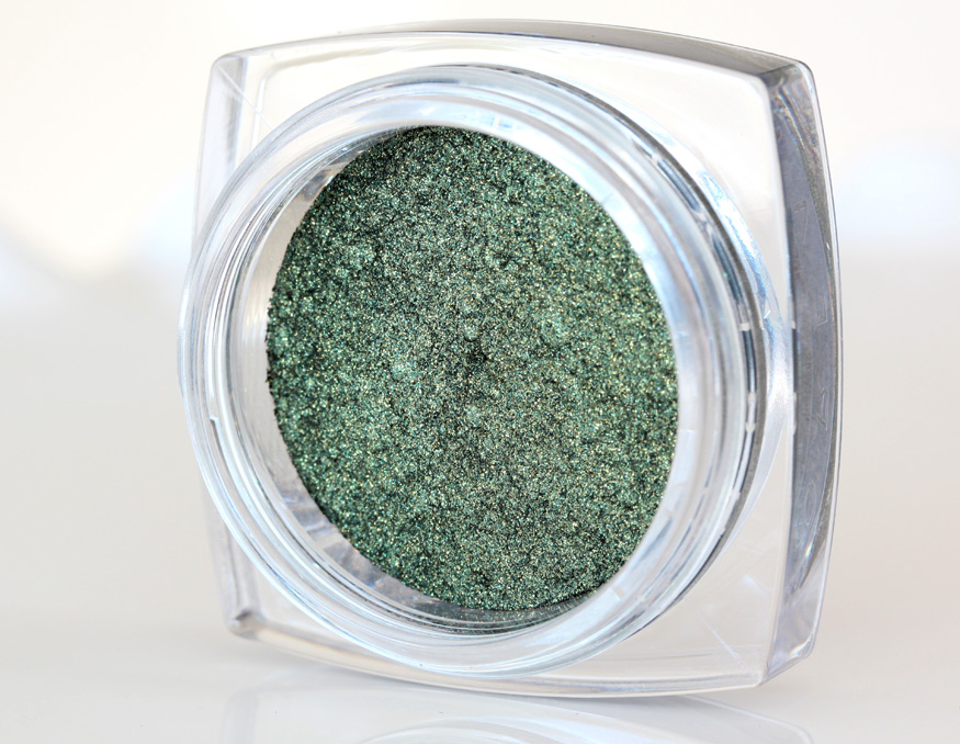 Oh I wonder if this is the elusive Emerald Lame! I have it, but unfortunately the formula doesn’t work too well on me, and I find the shimmer/glitter just a tiny bit too rough for my sensitive eyelids. The color is great though. I can’t pick on that!