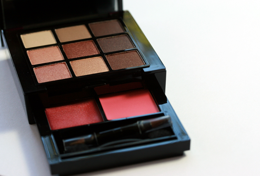 $11 huh? Man, it’s worth it right there. Although I generally don’t like it when they put eye shadow and lip gloss in the same palette (because the powder gets into the gloss and makes it icky), they seemed to have solved this with the separate gloss drawer.