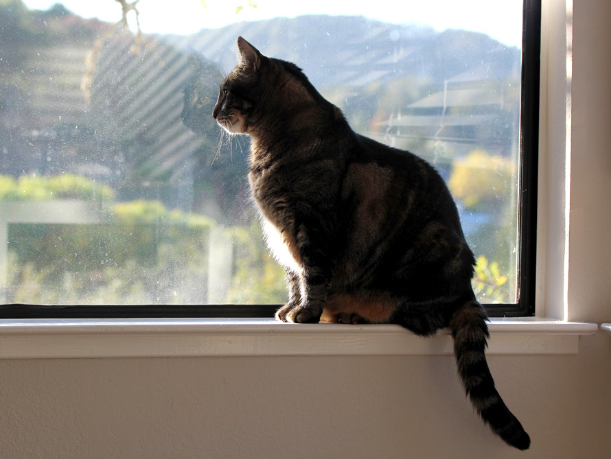 I love the reflection of that cute face in the glass!
