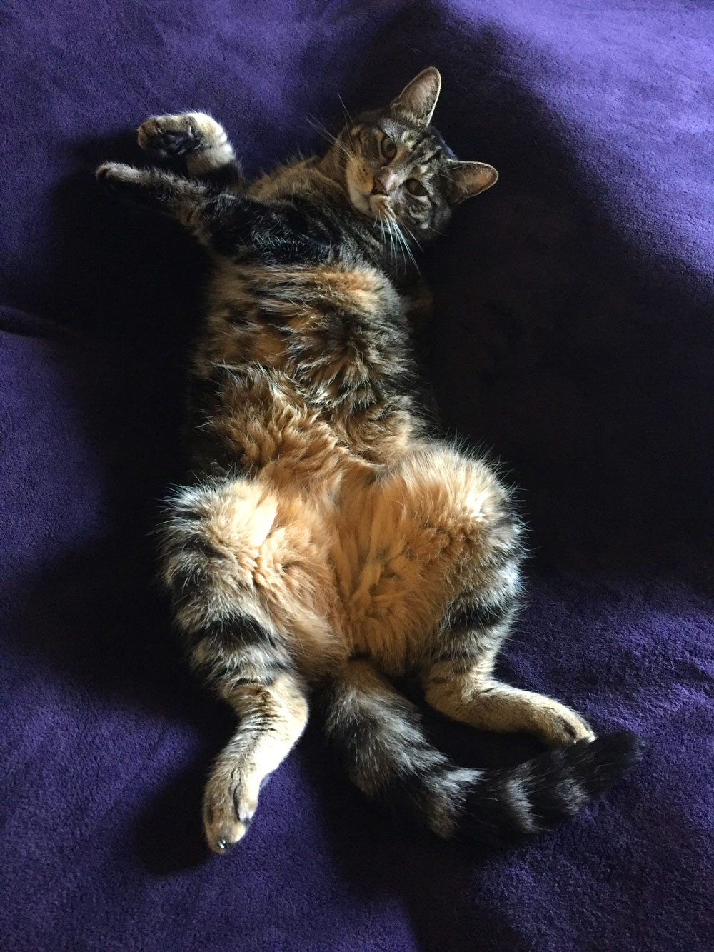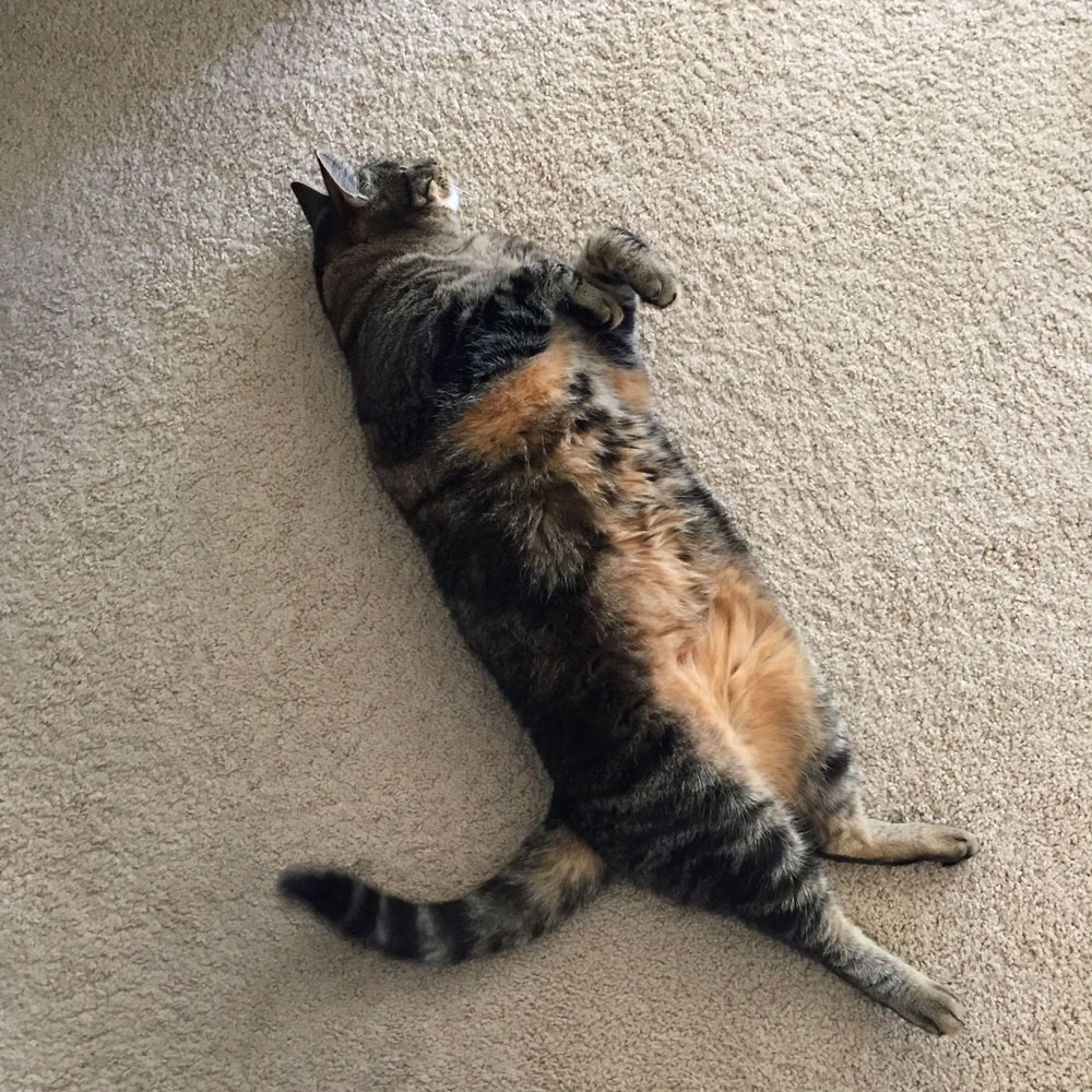 Fluffy tabby tummy! I love it! 🙂 Mingus loves showing off his belly. I catch him quite frequently laying on his back showing off his abs. When he’s in the right mood, he loves belly rubs. Work it Tabs. You’re lookin’ good!