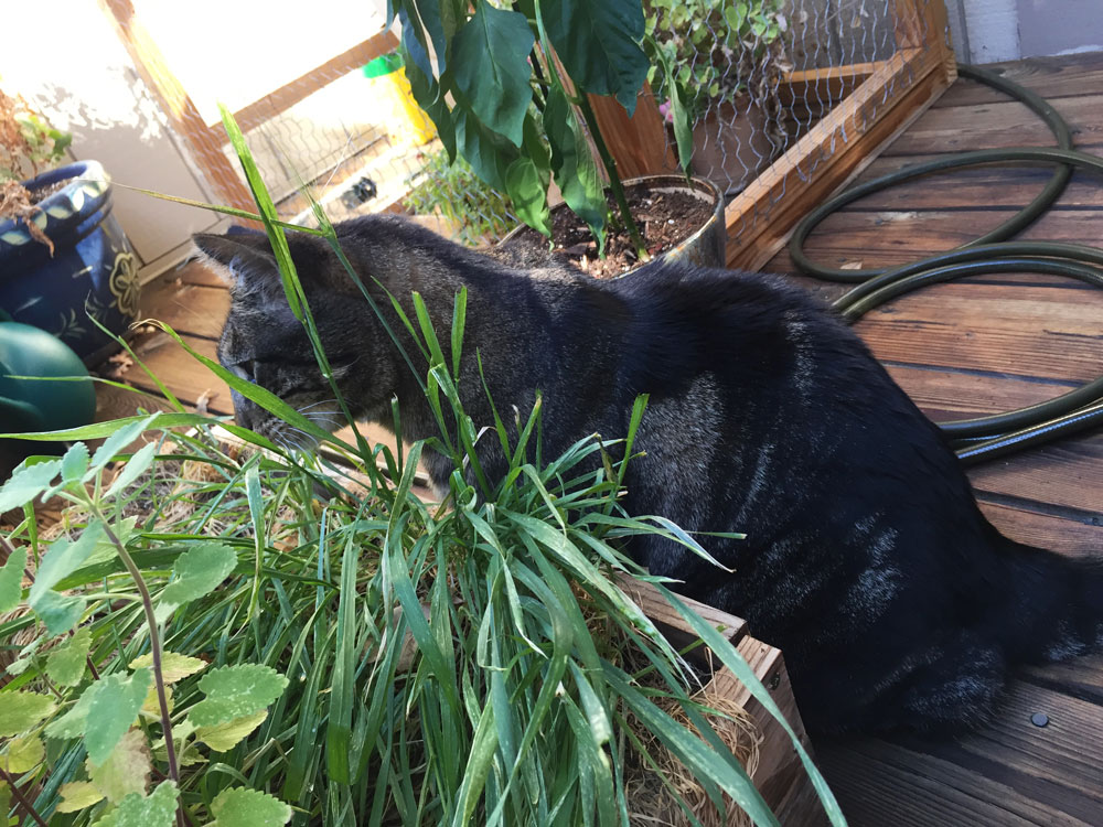 Tabs is so cute. I just want to pet him because he’s so fluffy! Tulip is not a great mouser. She is great at eating spiders though..