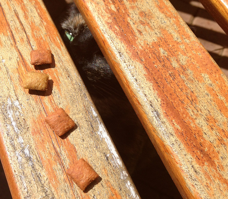 One of my responsibilities involves feeding Tortie Girl Temptations at least twice per day, and I think I’m doing a good job… She’s a little hard to read sometimes (like my other employer), but she hasn’t scratched my eyes out (yet).