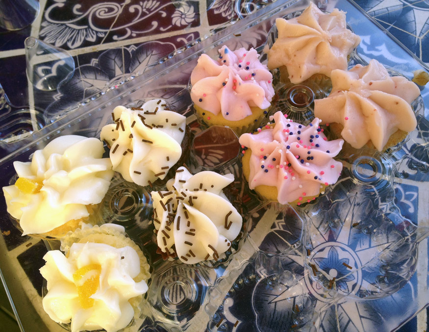A Tuesday Treat: Mini Cupcakes May 8th, 2012 by Karen 6 Comments El Hub surprised me with some mini cupcakes from Sweet Things, my fave place for cupcakes in Marin. Of course there’s enough to share! Which one would you like? There’s lemon, red velvet, vanilla and strawberry.