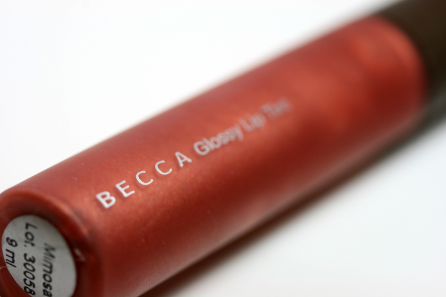 Becca Mimosa Glossy Lip Tint July 25th, 2010 by Karen 2 Comments Meet Becca Glossy Lip Tint in Mimosa ($23), a shimmery golden bronze. She’s my latest lipgloss crush. 🙂