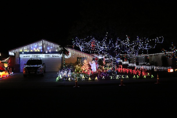There’s a street in the neighborhood where my parents live that goes crazy all-out with the lights (Vegas style), and everybody cruises up and down the street looking at them.