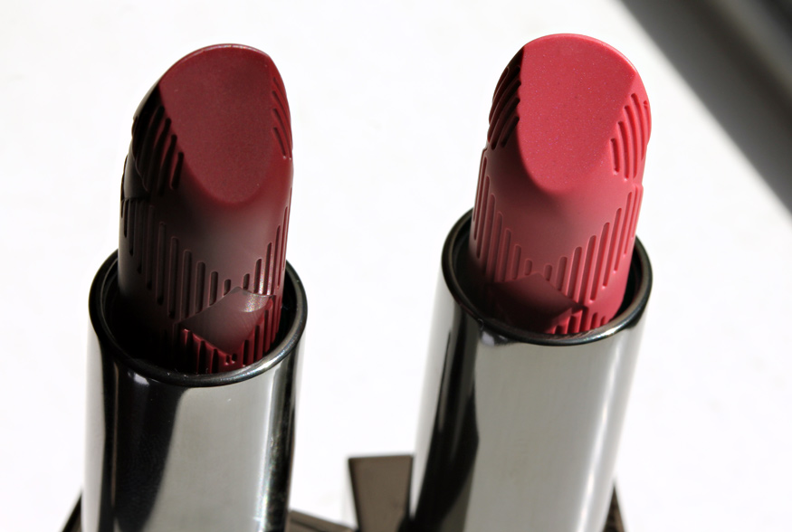 The new Burberry Beauty Lip Mist Natural Sheer Lipsticks ($30 each) in No. 206 Blueberry (left) and No. 209 Feather Pink (right).