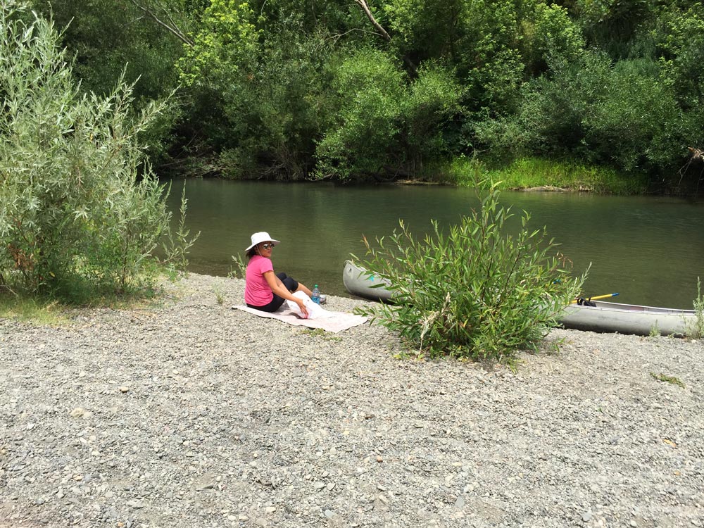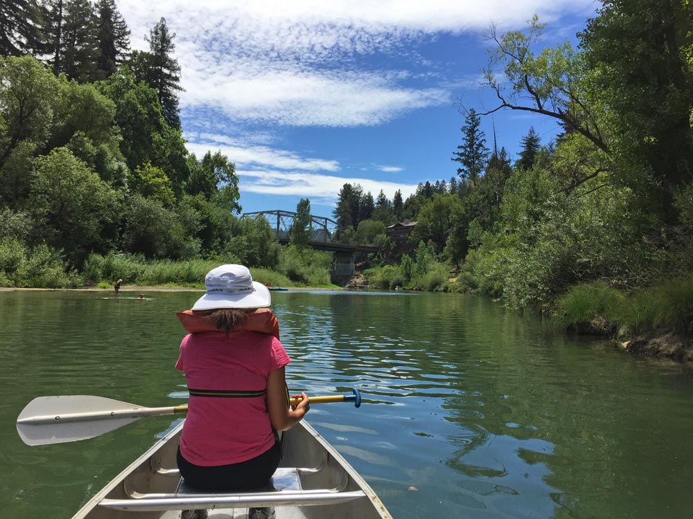 We canoed the river last year, too, but that was from Monte Rio Beach in the town of Guerneville. This time we started about 10 miles upriver, and I liked it better. The river was more wild and the shore was greener, and we saw a lot more birds, like an osprey, a blue heron and about 500 ducks — all of them female, which was a bit weird…