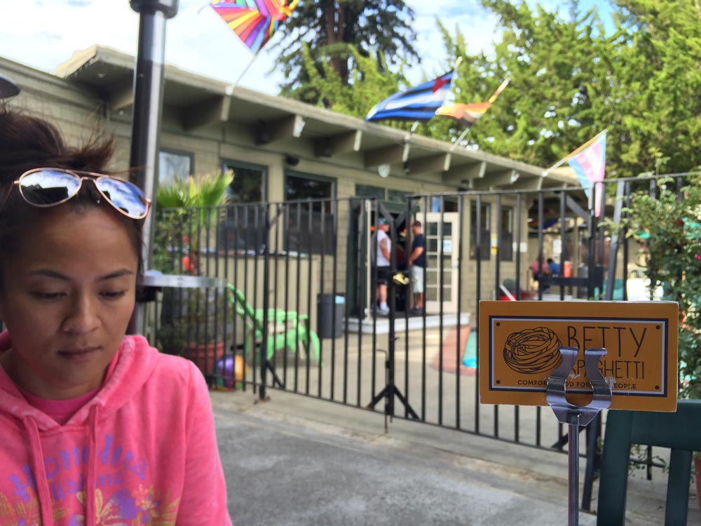 Afterward we stopped in Guerneville for dinner at a friggin’ fantastic, fun, very casual place called Betty Spaghetti.