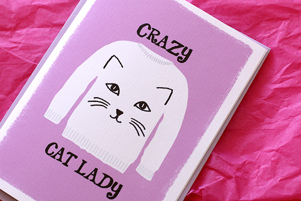 I actually have a card with a cat on it that I’ve been meaning to send to my friend Amy. It says something like “This is Taco. Taco knows how long it’s been since you washed that bra you’re wearing.” and then on the inside it says “You disgust Taco.” Dumb, but it made me LOL.
