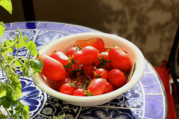 It is hard to pass on fresh tomatoes. Although, they would be yummy sliced in half and placed on a thin pizza crust with provolone cheese and baked til bubbly. Then top with fresh basil and Alaea salt.