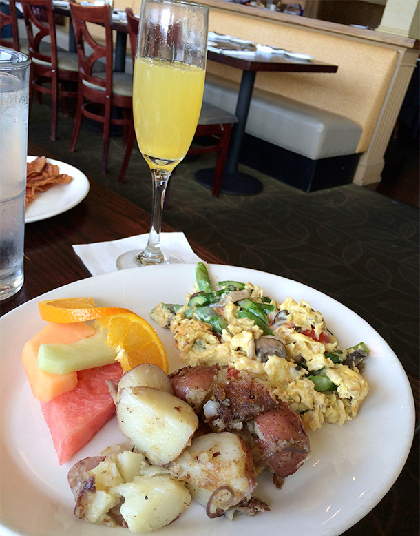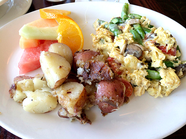 I had the veggie egg scramble with asparagus, tomatoes, mushrooms, with home fries and fruit on the side…