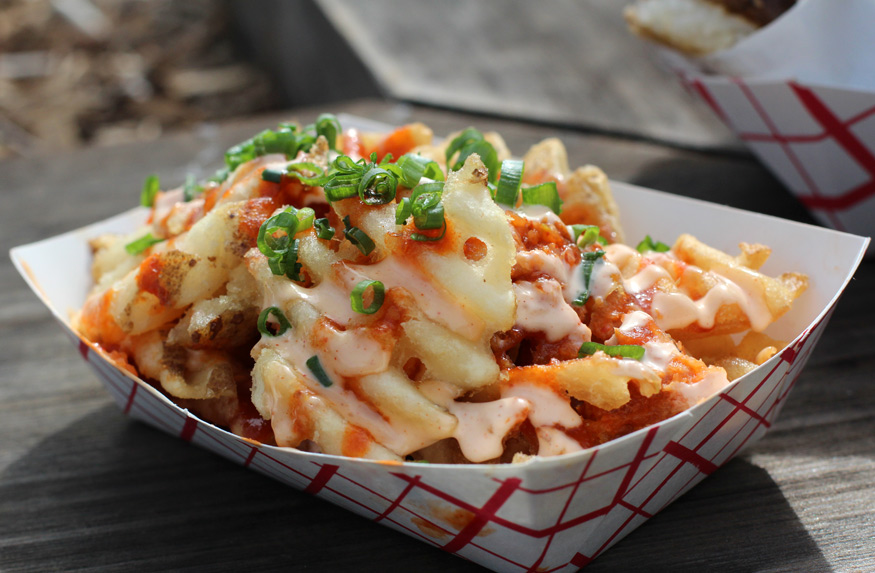I got my meal from the Koja Kitchen food truck. Above are the Kamikazi fries: criss-cut fries, kimchi, green onions, signature sauce and Japanese mayo. If you’re a meat eater, you can order it with Korean BBQ Beef, too.