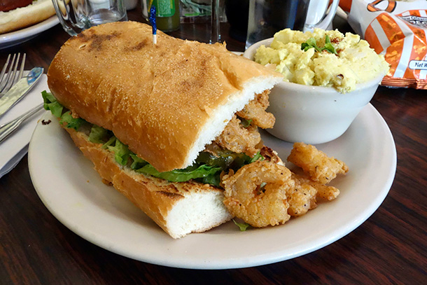 I ordered a Frenchman Po’ Boy, and it came STUFFED to the gills with fried shrimp and fried green tomatoes. Needless to say, this was my cheat meal for the week…