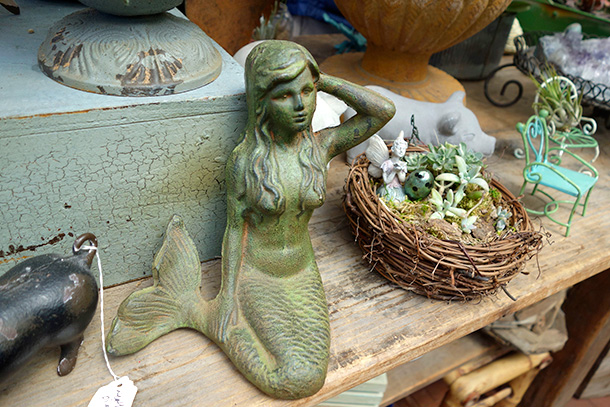 I must go to The Potting Shed! I love all the things in the pictures, especially the mermaid statue. She would totally rock my garden 🙂