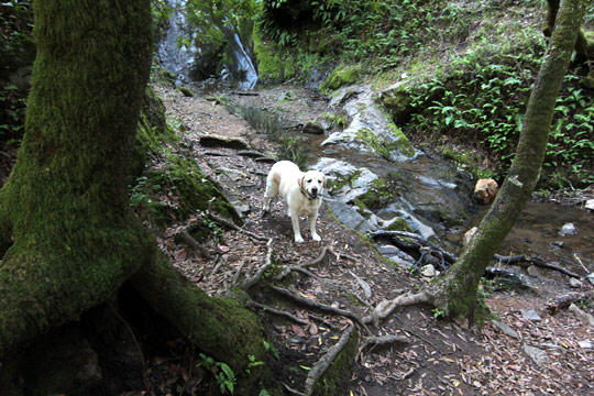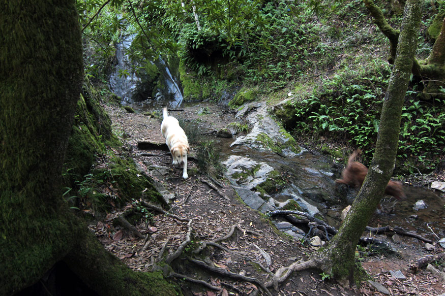Two labs by a waterfall. I met them (along with their human parents) when I went hiking a few weeks ago.