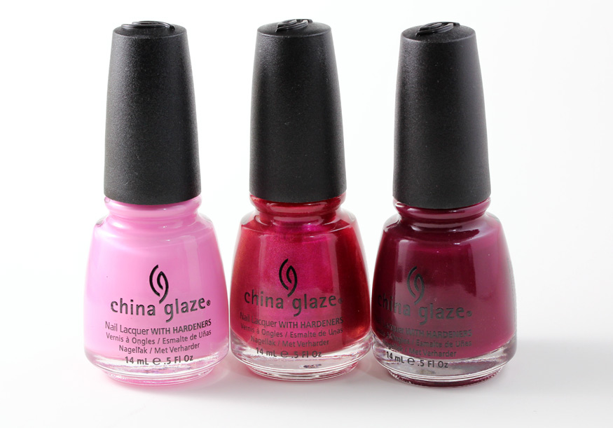 Hello, Cupid January 21st, 2012 by Karen 5 Comments Starting to think about my Valentine’s mani, and China Glaze is on my mind. 🙂 From the left: Dance Baby, Sexy Silhouette and Seduce Me ($7 each).