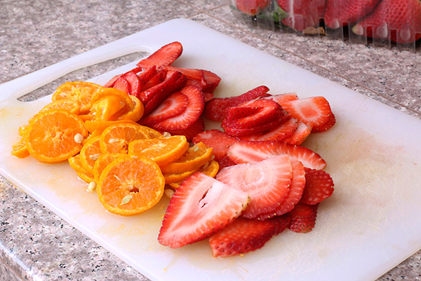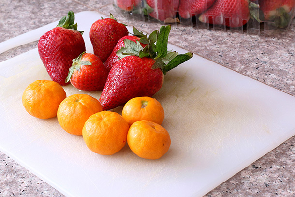 This time I used some gigantic strawberries I found at Trader Joe’s and some little oranges from my orange tree.