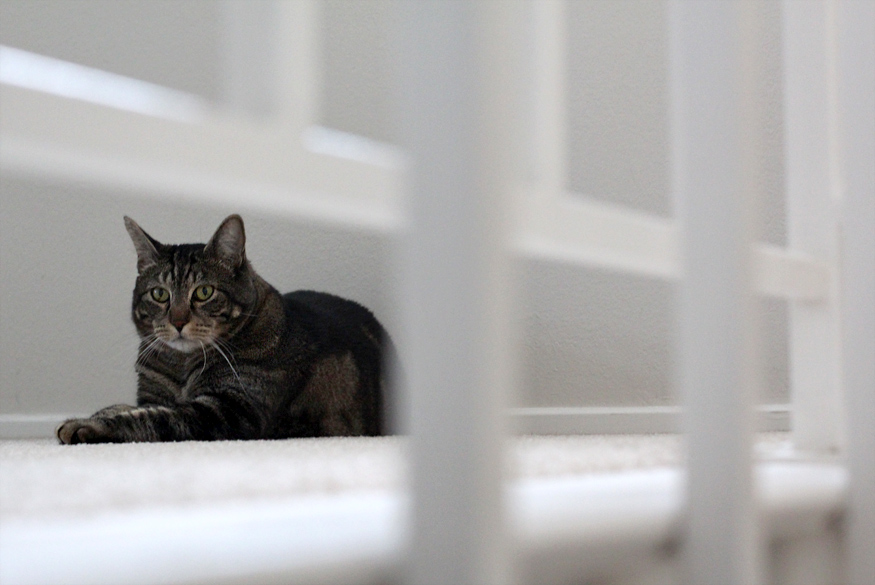 Hiding Upstairs October 26th, 2011 by Karen 10 Comments Tabs gets shy when his nana and grandpa visit.
