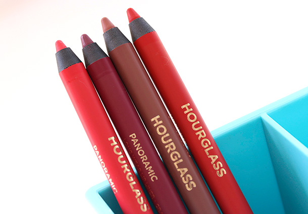 The luxury makeup line (which I lurve) recently added four new shades to their Panoramic Long Wear Lip Pencil line — orangey red Raven, coral-red Muse, deep aubergine Empress and true nude Eden.