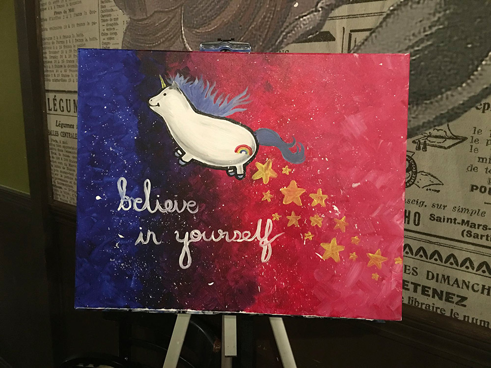 I’ve done paint nite too, here in MN! Mine was not a kick ass chubby space unicorn though!