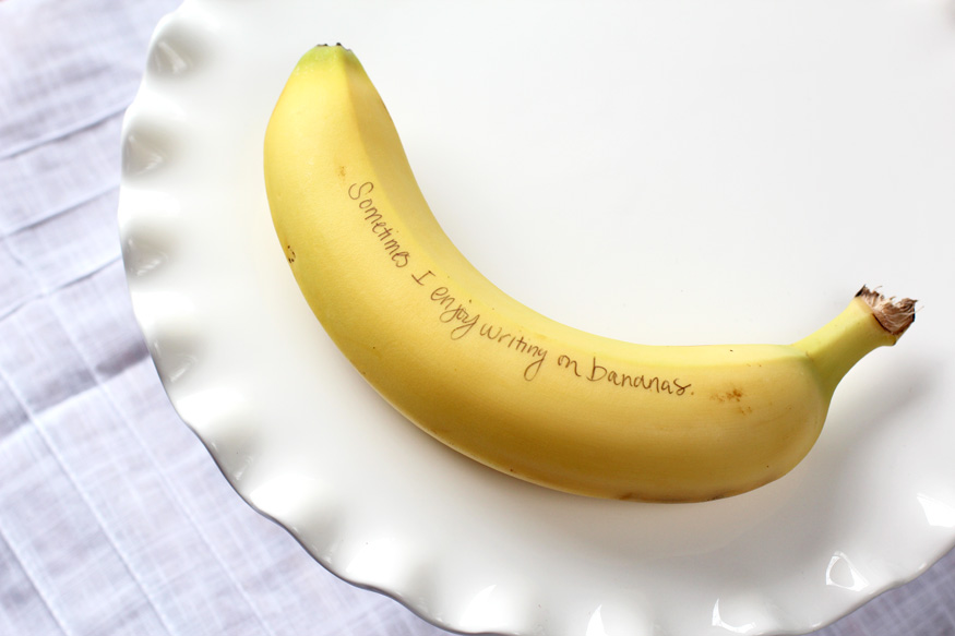 No you aren’t the only one. I read something about writing on banana’s with toothpicks (it bruises the skin very lightly so it doesn’t show up for a few hours) and immediately went and wrote on all the banana’s at my local Trader Joes 🙂