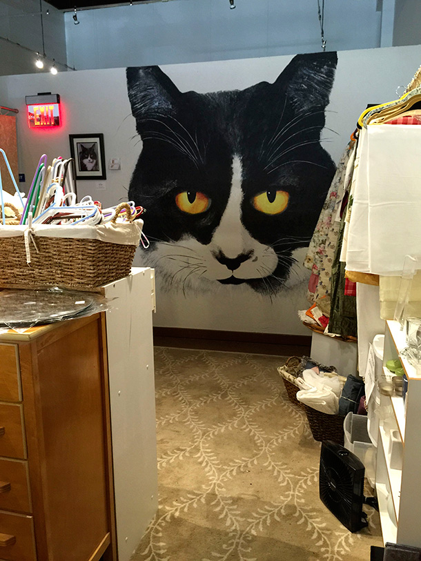 But sometimes something happens to make me fully realize the true extent of my cat lady-ness, like this afternoon when I was walking around downtown Petaluma with my family taking pics of every cat-related thing I saw.