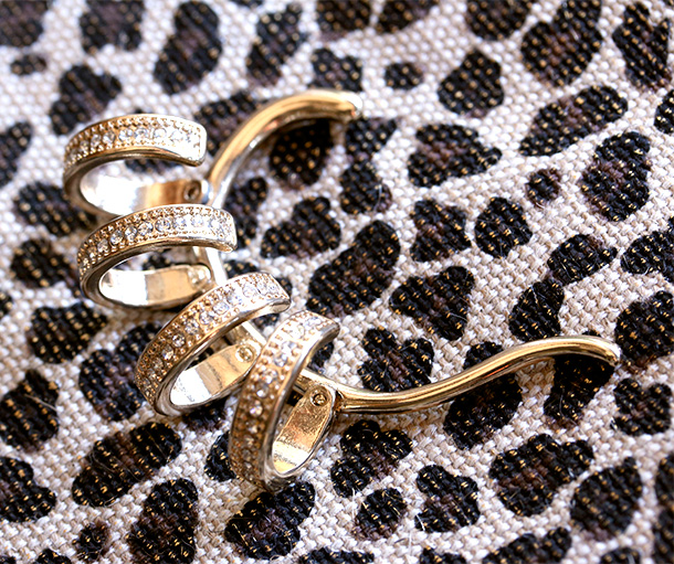 NOTE: you do have to be a little careful with it because it’s not the sturdiest piece of bling. I had it in a pocket inside my purse last weekend, and one of the crystal rings fell off.