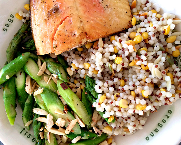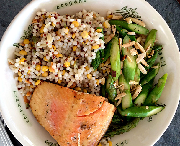Easy to make and ready in 10 minutes, this delish side dish o’ grains is SO good. I’ve been making it lately, instead of rice, whenever I make fish and veggies.