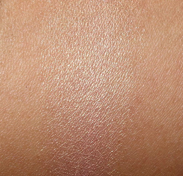 I built it up so the gold shimmer would appear in the swatch. It’s pretty subtle and you could wear it on your cheeks. 🙂