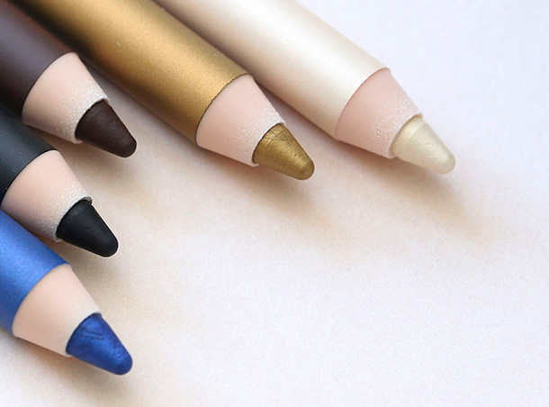 Both feel silky, slick and scoot along my skin, which I love. Getting these on my lids is no problem at all — there’s no tugging! — but EL’s pencils do take a few minutes longer to dry down, which means more time to play and smudge with the rubber/smudging thingamabob on the end of the pencils.
