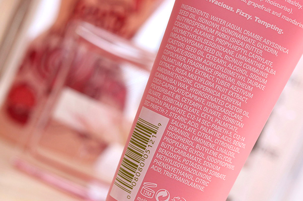 To my basset hound-like sense of smell, Rhubarb & Rose hand cream evokes fancy fizzy citrus cocktails. It has notes of yuzu (a citrus fruit originally from East Asia), grapefruit and mandarin. My schnoz also picks up a hint of sweet champagne. The concoction is very crisp and invigorating.