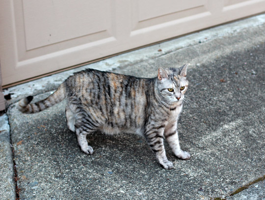 What a pretty girl! The low hanging belly on kitties is so cute. Mingus will get the tail puff and start growling if he sees another cat get too close to the house.