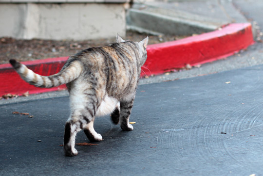 I went walking this afternoon and bumped into a silver, orange and black tabby who lives down the hill.
