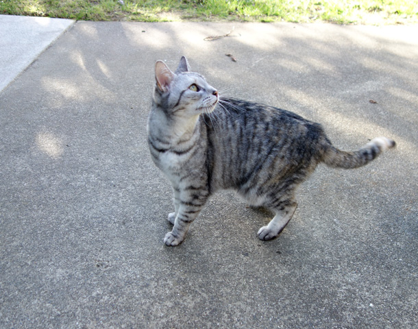 Neighborhood Cats: Charlize Strikes a Pose February 21st, 2013 by Karen 13 Comments I ran into Charlize, one of the neighborhood cats, the other day. She’s a tiny, stripe-y sweetheart. 🙂